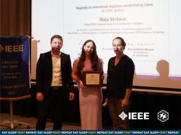 - Student Maja Varšava - for her exceptional volunteer contribution to the activities of the IEEE Student Branch at the University of Osijek and to the organization of IEEEXtreme in Croatia.