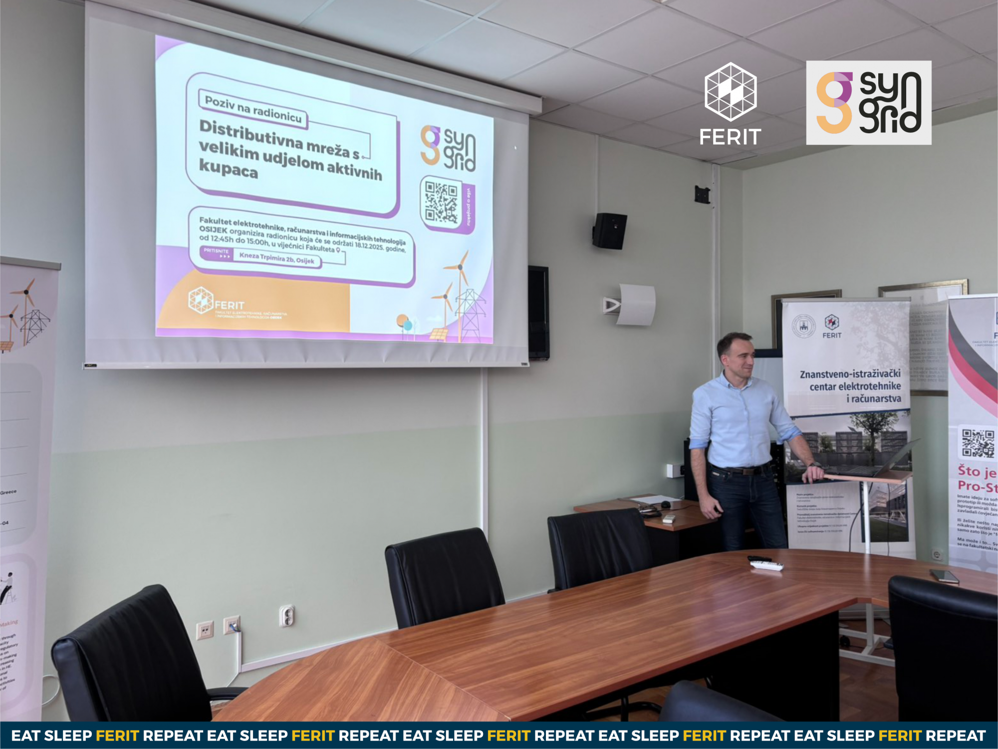 Last Thursday, 18 December 2025, FERIT hosted the workshop “Distribution Networks with a High Share of Active Customers”. The event was organised within the SynGRID project, funded by the Horizon Europe programme, with the aim of strengthening cooperation between academia and the energy sector.