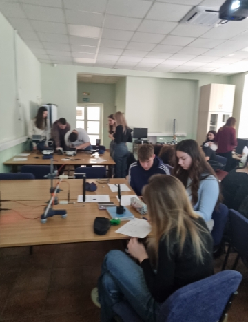 U ponedjeljak, 3. ožujka 2025. godine, u vremenu od 11.30 do 14.30 sati, održana je radionica pod nazivom „Boje svjetlosti“. U radionici je sudjelovalo dvadeset i troje učenika četvrtog razreda Gimnazije Vukovar, u pratnji profesorice Karoline Dvojković. Voditeljice radionice, Željka Mioković i Anita Kvaček Blažević, na zanimljiv i pristupačan način približile su učenicima ključne koncepte optike i moderne fizike kroz niz eksperimenata: određivanje žarišne daljine leće, analiza spektra, polarizacija svjetlosti, ispitivanje kvalitete izvora svjetlosti te određivanje Planckove konstante.