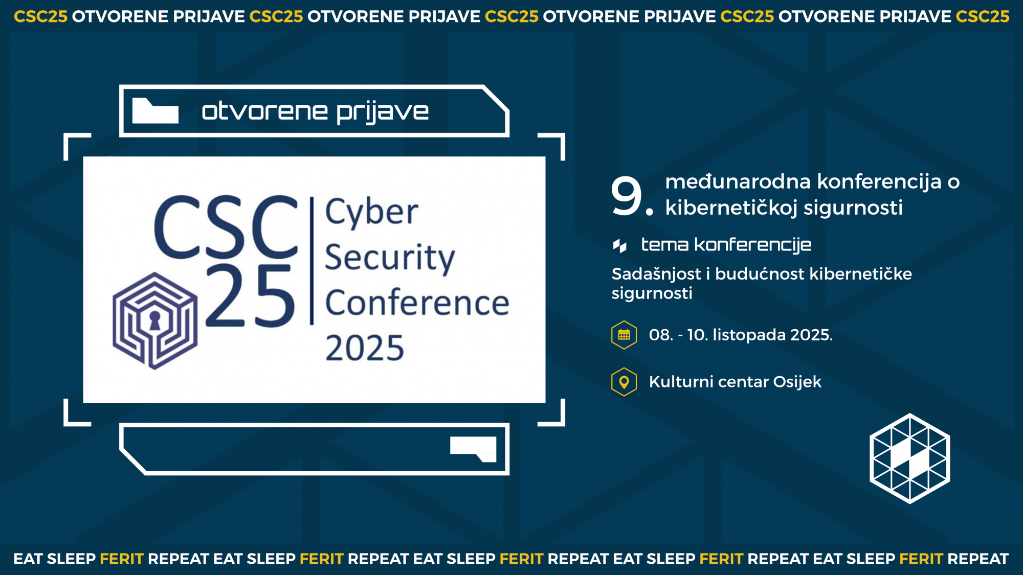 Deveta međunarodna konferencija o kibernetičkoj sigurnosti – CSC 25, u organizaciji Hrvatskog Instituta za Kibernetičku Sigurnost (HIKS) u suradnji s partnerima Atos, Ato Inženjering, Fakultet elektrotehnike, računarstva i informacijskih tehnologija te Centar za nestalu i zlostavljanu djecu, održat će se u Osijeku, Hrvatska, 8. – 10. listopada 2025. Ovaj ekskluzivni događaj okupit će vodeće stručnjake i lidere industrije iz Hrvatske i inozemstva kako bi podijelili svoja znanja, iskustva i najbolje prakse u području kibernetičke sigurnosti.