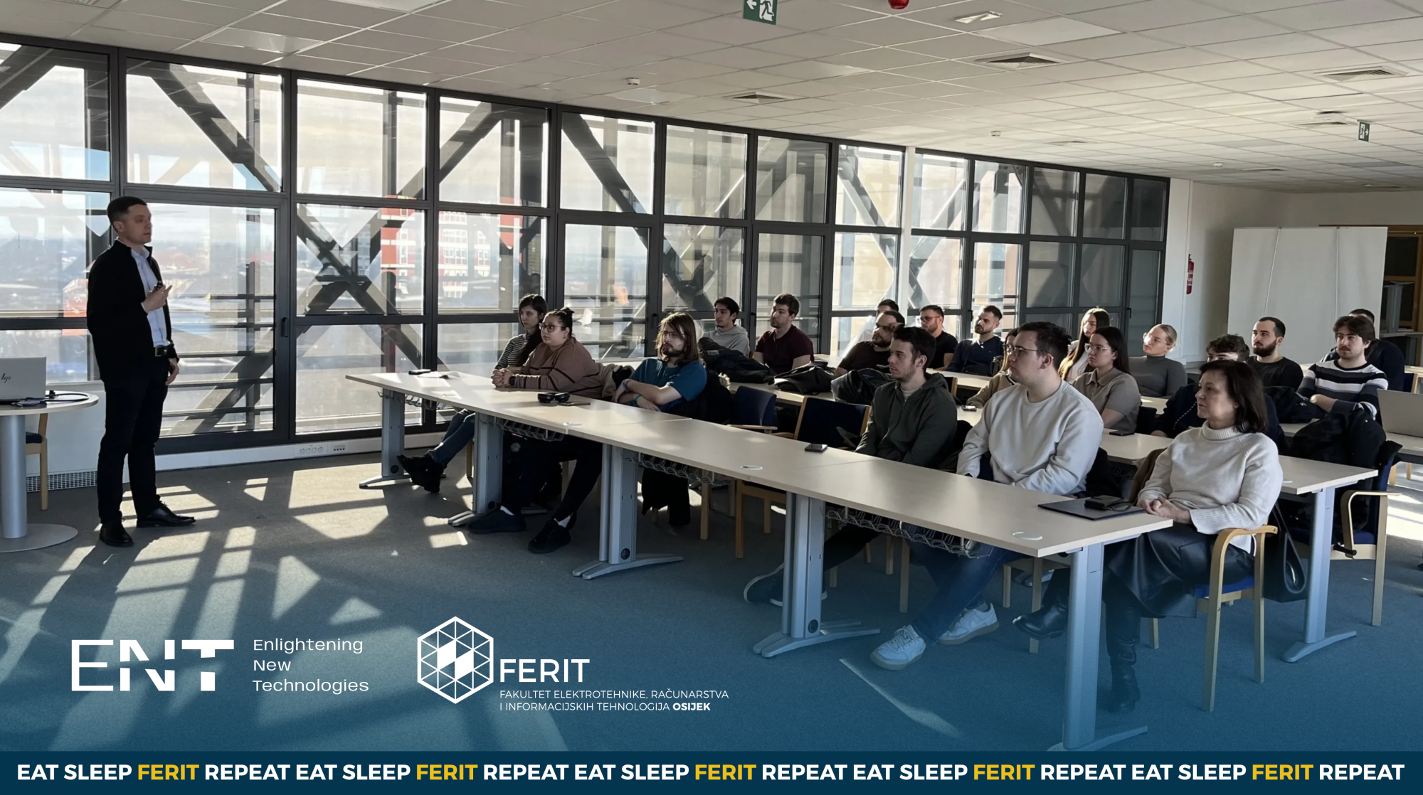 Tijekom siječnja u osječkom uredu tvrtke Ericsson Nikola Tesla (ENT) održane su dvije nastavne aktivnosti za studente FERIT-a: predavanje i laboratorijske vježbe usmjerene na mobilne komunikacijske sustave i njihovu primjenu u praksi. U aktivnostima su sudjelovali studenti druge godine diplomskog studija Elektrotehnika, modul Informacijske i komunikacijske tehnologije, u okviru kolegija Mobilne komunikacije.